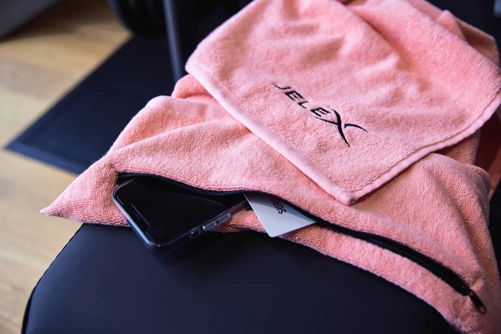JELEX 100FIT Fitness Handtuch Mit Zip-Tasche Rosa