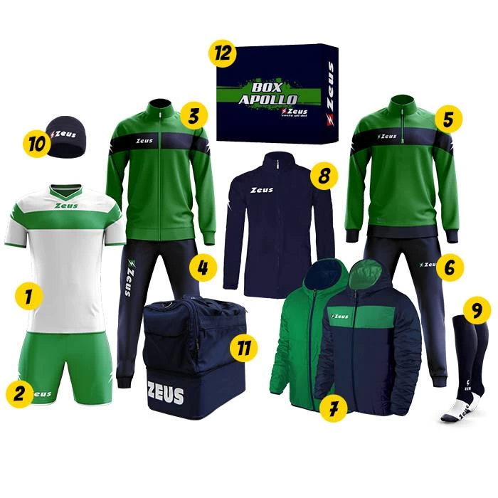 Zeus Apollo Fußball Set Teamwear Box 12-teilig Navy Grün