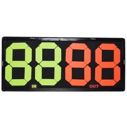 - gelbe Ziffern links (IN), rote Ziffern rechts (OUT)